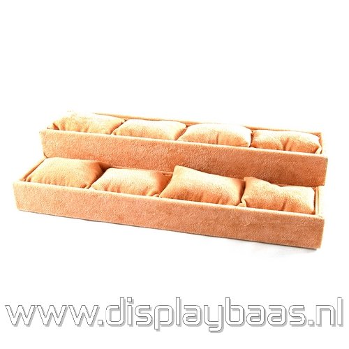 Displaydoos voor armbanden/horloges, velours, peach, 2 verdiepingen 8 kussentjes - Klik op de afbeelding om het venster te sluiten